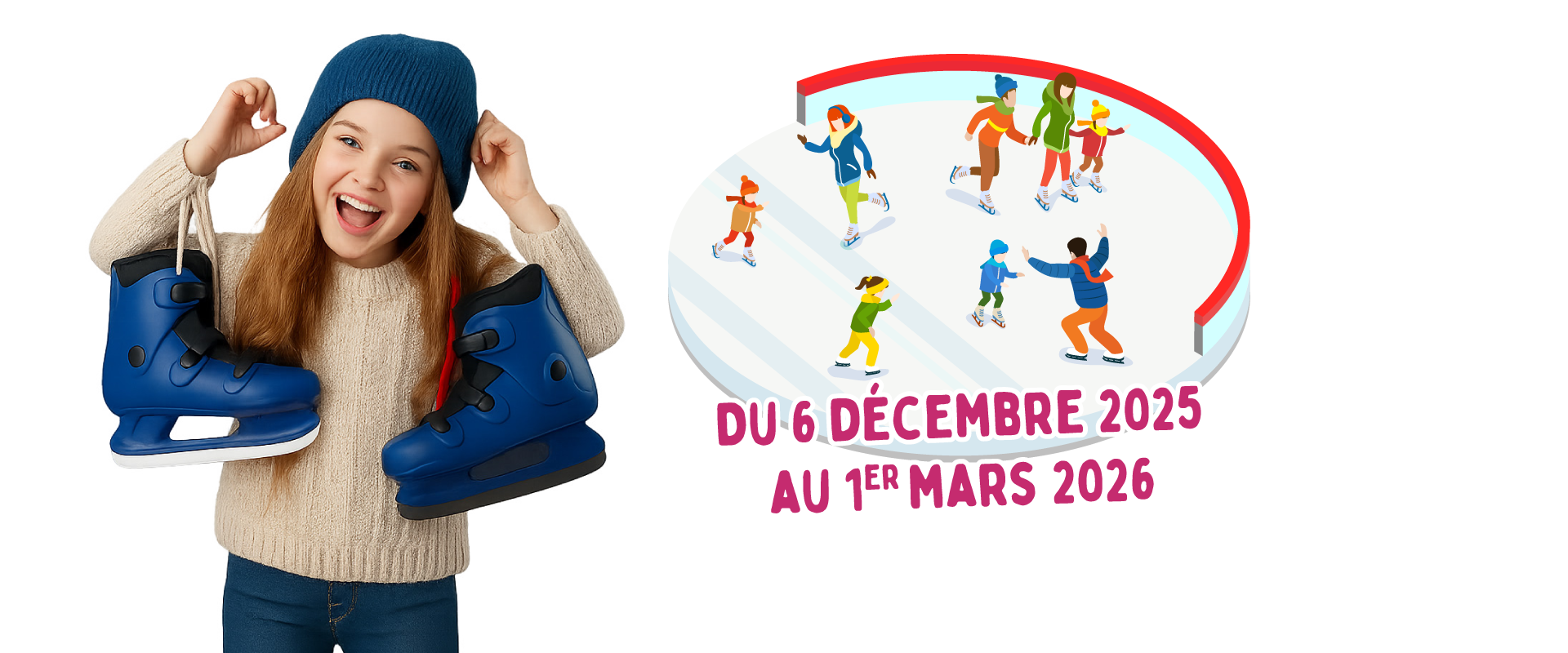 Accessible pour tous dès 5 ans – Possibilité de Location de patins – chalet pour crêpes, gaufres et chocolats chauds
